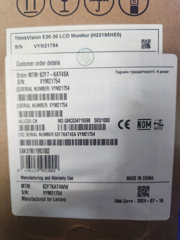 Elevate your workspace with the Lenovo ThinkVision E20-30, a sleek and reliable 19.5-inch LCD monitor designed for productivity, comfort, and style. Perfect for home offices, corporate settings, or study setups.