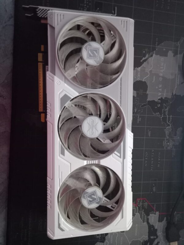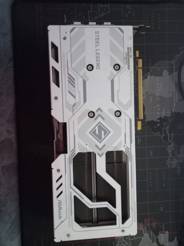 The Steel Legend cooling design features a reinforced metal backplate, high-efficiency heatsink, and triple-fan airflow system to maintain low temperatures and quiet operation under load. Built with premium components, this card is designed for durability, stability, and long-term performance.