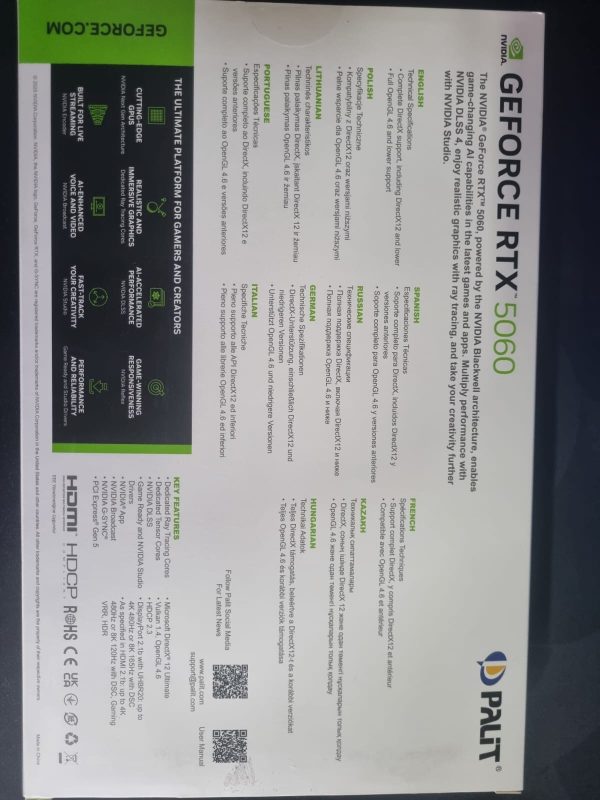 The Palit GeForce RTX 5060 White OC is a powerful mid-range graphics card built on NVIDIA’s Ada Lovelace architecture, delivering excellent performance for gaming, streaming, and creative workloads. This used unit has been tested, is fully functional, and comes with its original packaging.
